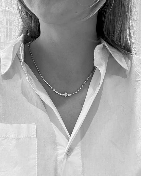 Sophie Bille Brahe presentation; If I wasn’t invested in diamonds & pearls before (the only diamond piece I wear and owe is my engagement ring), I do now. Blown away by Sophie Billie Brahe designs, mainly because they do appeal for everyday as well as occasion wear and are still fairly niche, I’ve added Nuage de Tennis necklace into my grown up, milestone, forever piece purchase wishlist. But also Petite Peggy pearls to sooner purchase list, as well as this pearl bracelet.