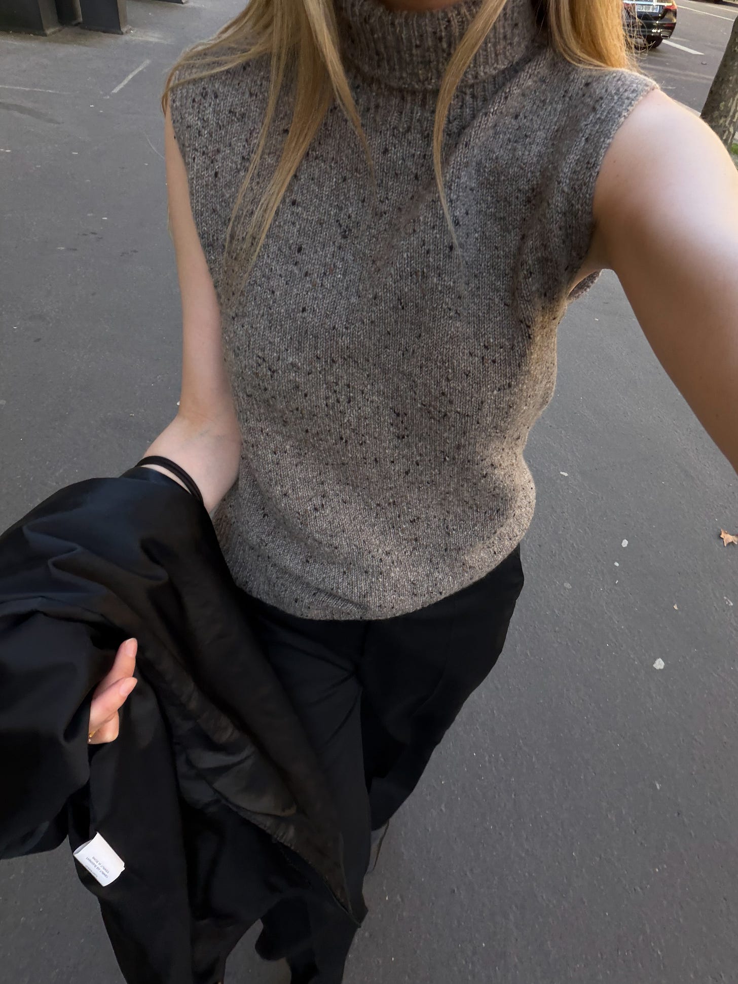 Finally, I’d argue the hardest-working piece in spring isn’t the dress. It’s the knit vest. But in a Lisa Yang Lauri scarf top or Dagmar mock neck way. Not overheating with long sleeves under the jacket is the major flex here. I’ve been rinsing Merilas from The Row since Paris — the tactic being to extend winter buy into spring.